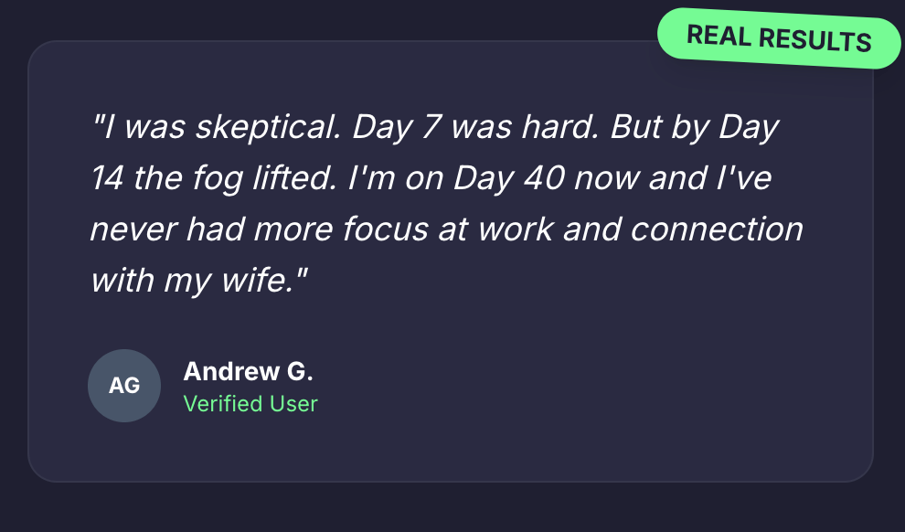 The program includes a specific protocol for relapses (Day 17). A slip-up is not a failure, it's data. We teach you how to get back up immediately without spiraling into shame.